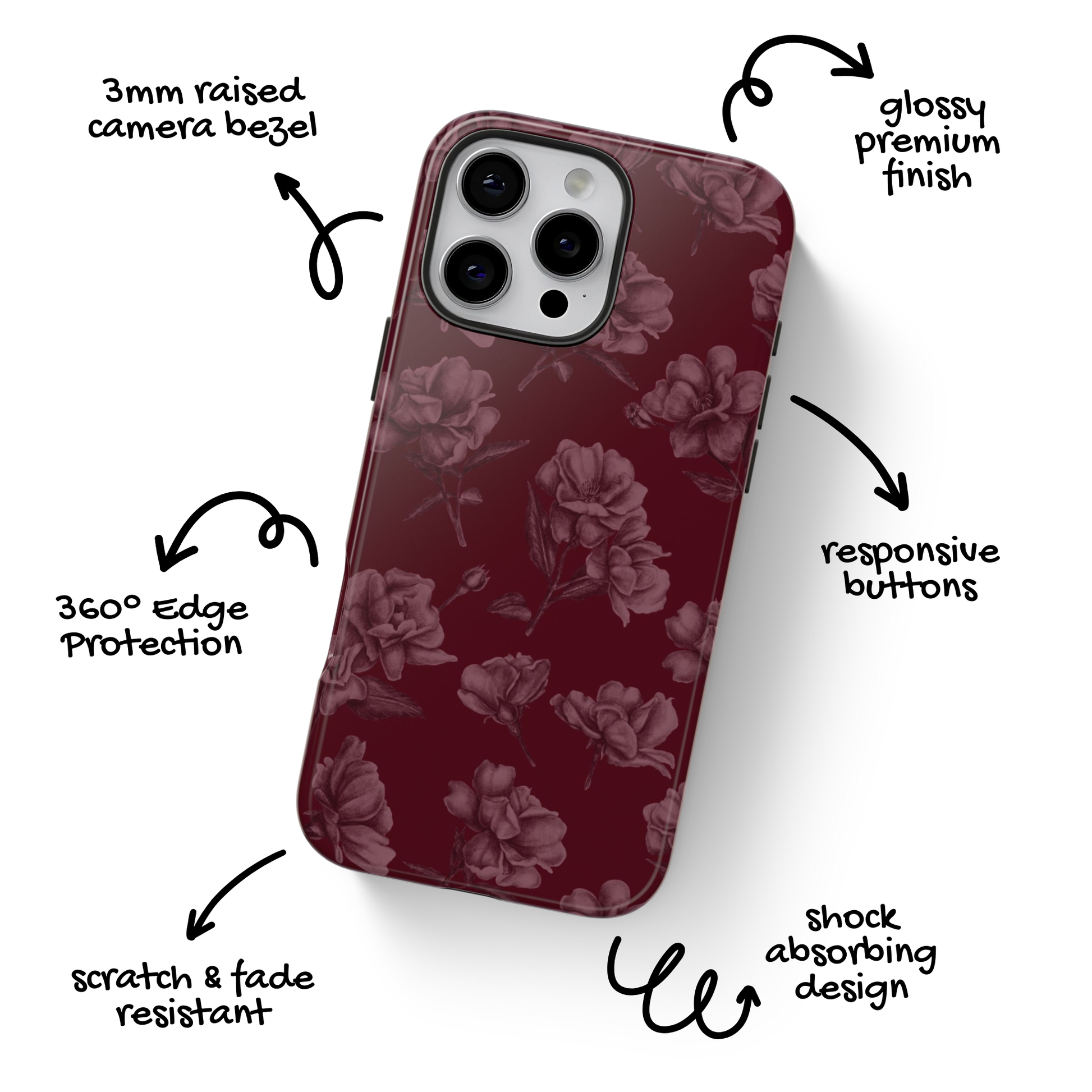 Elevate your phone's case game with this bold floral case in a rich, enchanting burgundy color.