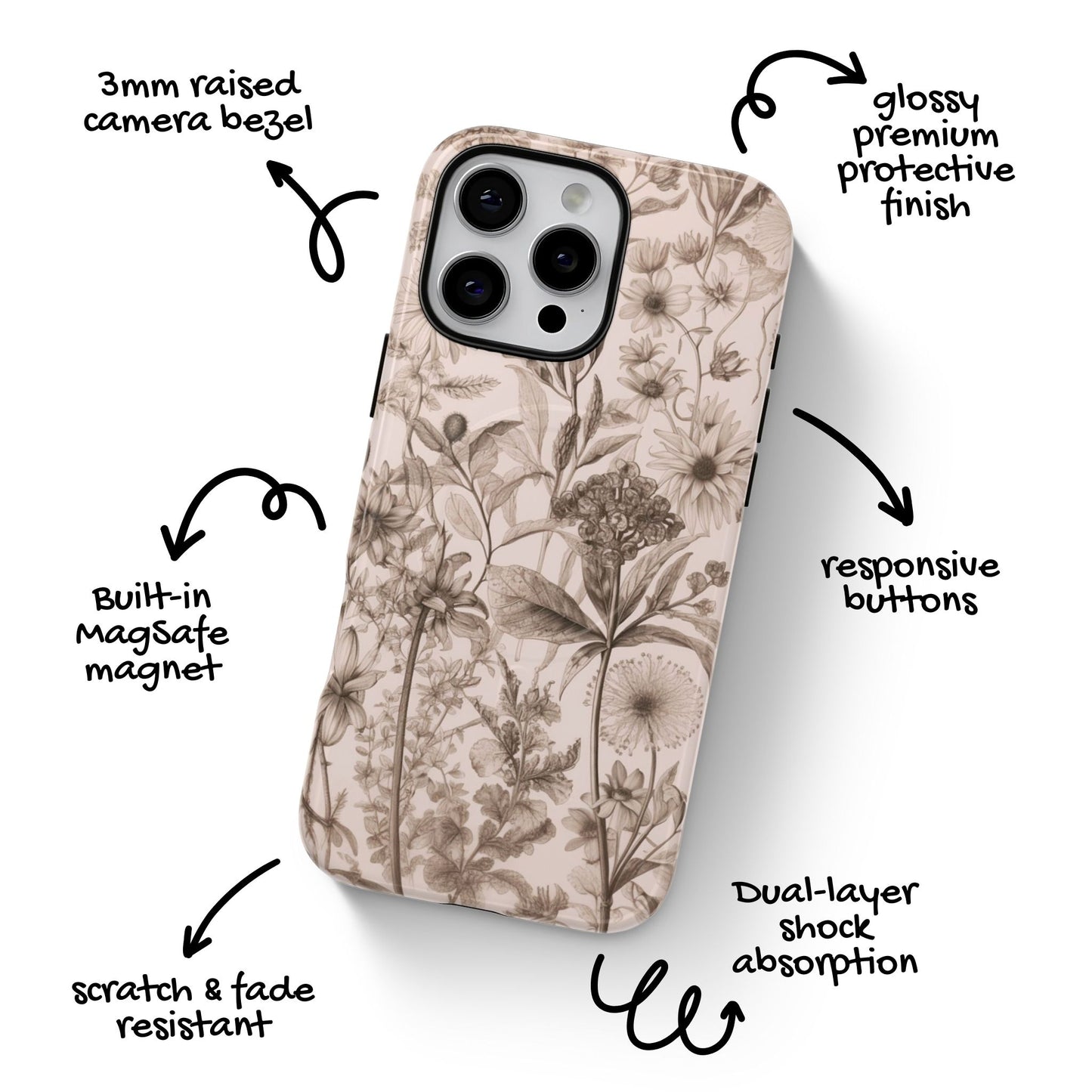 Get ready to up your phone's flower game with this subtle yet stunning floral MagSafe case—a must-have for those who appreciate understated elegance.